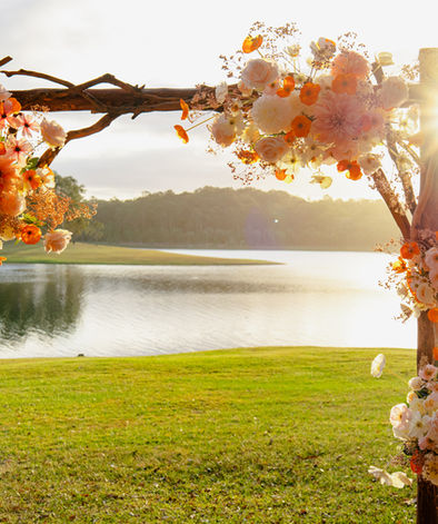 Discover this stunning arbour of orange and pink, with georgous poppies and dahlias adorned to capture the sunlight and glow with colour. The Poppy Delights arbour is fun, wild and joyous, and will be sure to brighten up your ceremony or special event. Let this breathtaking arbour elevate your next celebration!